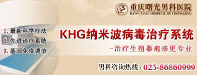 生殖泌尿感染诊疗专科是重庆男科医院重点项目之一,无论从医资力量、专业设备,还是治疗方法上都形成了独树一帜的优势特色。针对包皮龟头炎,我们医院了KHG纳米波病毒治疗系统,该治疗系统产生的多波形、多波长有机组合波增强包膜通透能力,提杀菌药物渗透作用,同时结合能电场的热杀菌技术,双重杀菌,有效歼灭体内病原体,从根本上消除炎症。